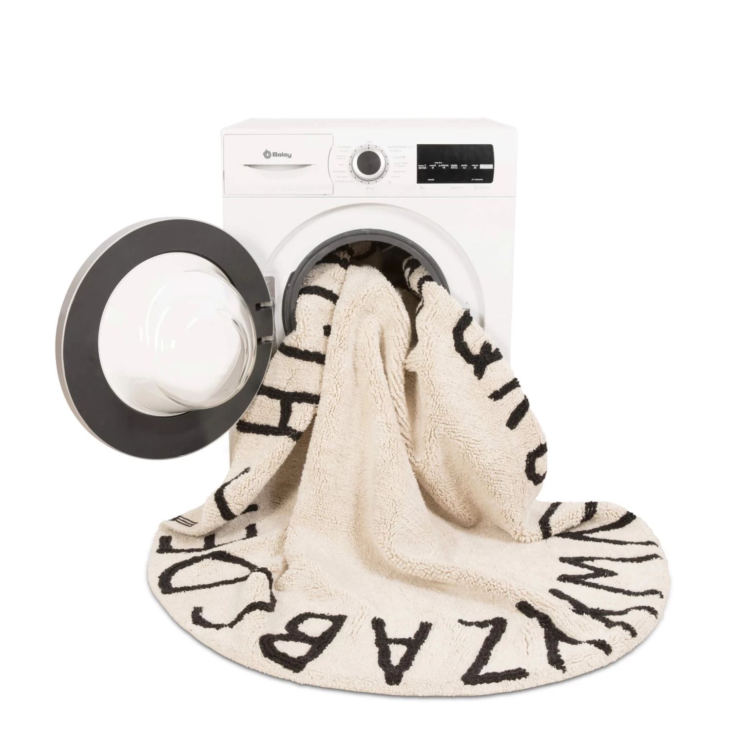 The fun ABC print on this round rug makes it a perfect addition to any nursery, bedroom or playroom.