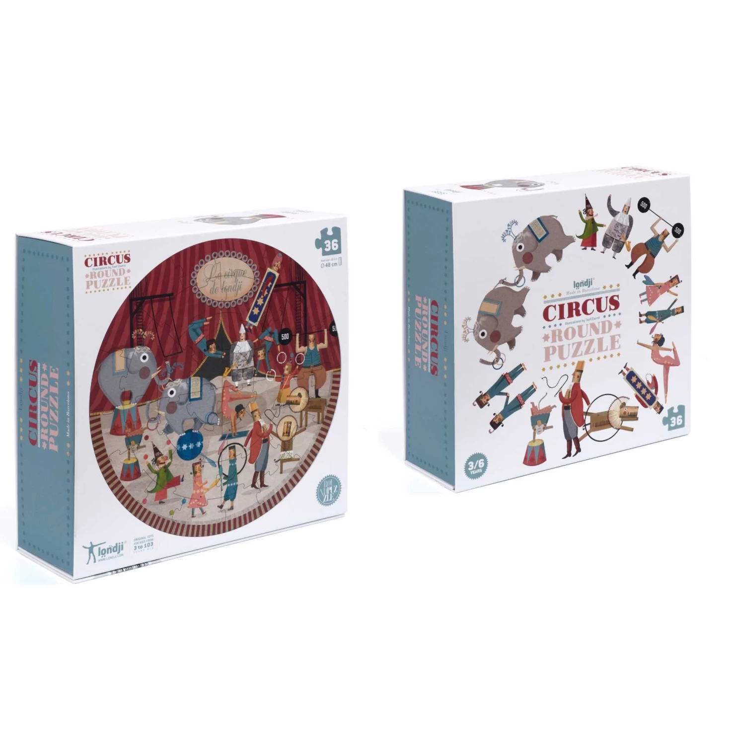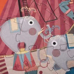 Welcome to a day under the big top with Londji’s Circus, captured in a unique 36-piece round puzzle that invites children into a world of wonder and excitement.