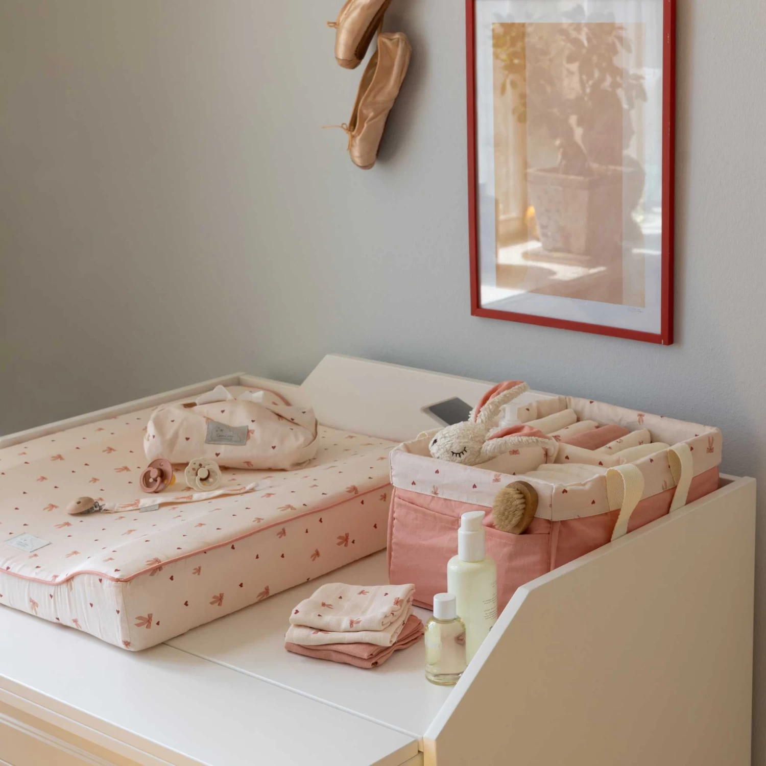 What a great idea this pretty and practical diaper caddy from Cam Cam Copenhagen is. Keep nappies, wipes, muslins and other essentials neat tidy and nice handy. Keep it on the changing table or at other changing points around the house and when going away simply pick it up and your good to go with everything you need.