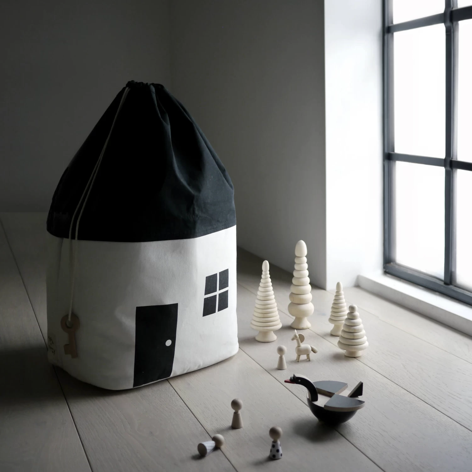 A slightly small version of our best selling House Storage Bag. A perfect new home for your little ones toys, or perhaps a collection of their favourite teddies, dolls or fairies. Whoever makes it into the home will find all they need with windows, doors and a little ladder.