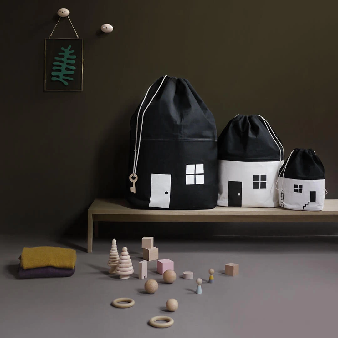 House Storage Bag – Black/White – Medium(Rock And Pebble House Storage Bag Black White Medium)