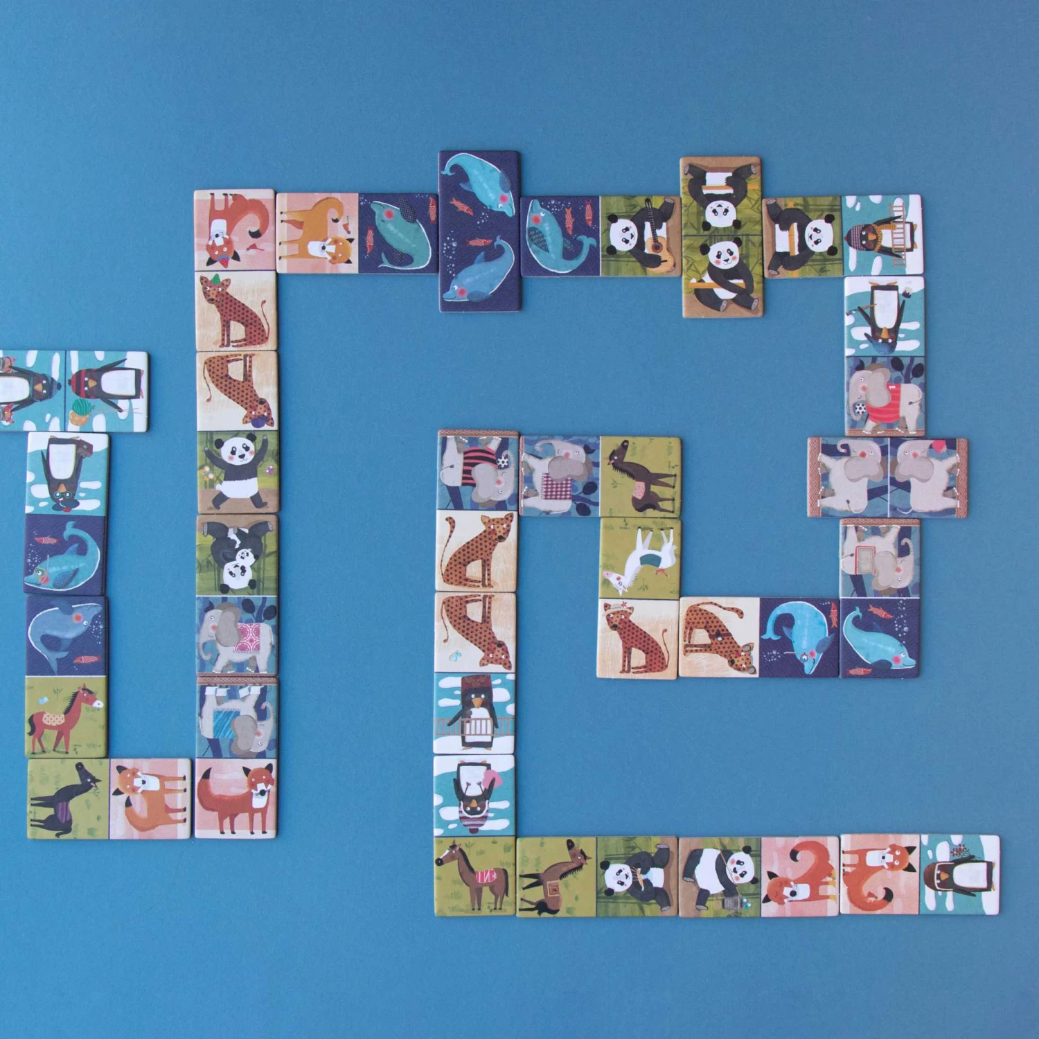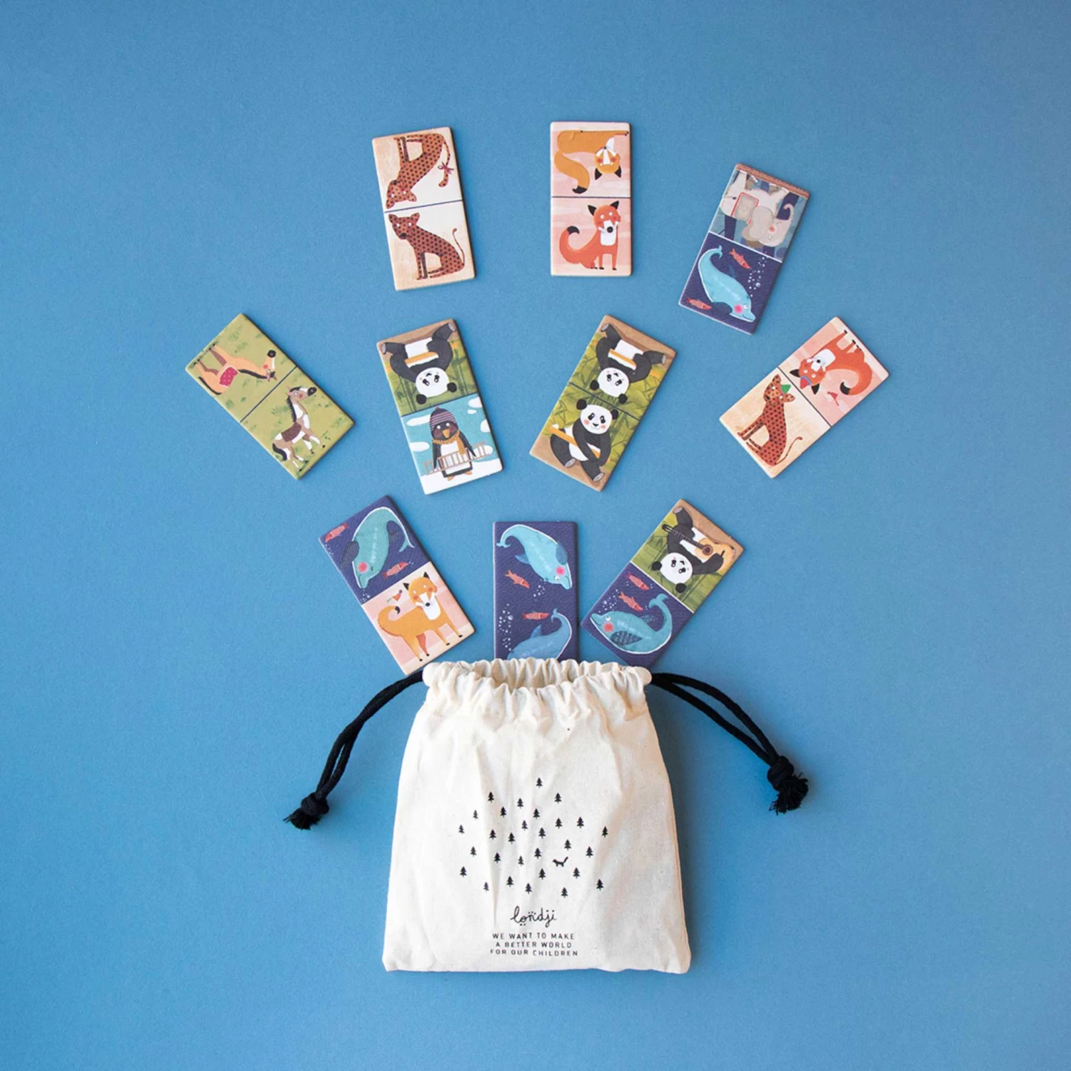 A lively bunch of elephants, horses, dolphins, foxes, pandas, and the ever-so-dapper Londji penguins are ready for a game filled with fun, laughter, and a dash of strategy. This is a traditional domino game with a twist, perfect to play with all the family including the very littlest.