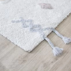 We absolutely love the fun colours and prints of the Pyjama party rugs – available in 2 colour-ways. Clever details like the little tassels really make this rug unique. Perfect for any nursery, bedroom or playroom.