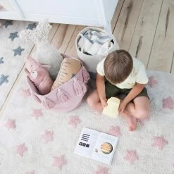 We love it when a product is as practical as it is beautiful. All of our rugs from Lorena Canals are totally washable at 30°C, so just a quick wash away from your little ones mess and dirt. Handmade from 100% cotton and dyed with natural dyes they are soft and cosy.