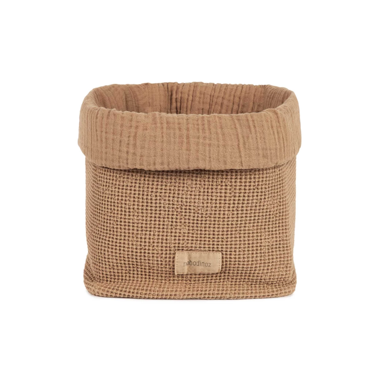 Add this basket to the playroom, bedroom or changing table to store small toys or nappy changing essentials. Made from double cotton muslin and finished with honeycomb detail – keeping tidy and organised is looking very smart! Team with other pieces from the Wabi Sabi range – there’s cushions, bedding, blankets and more.