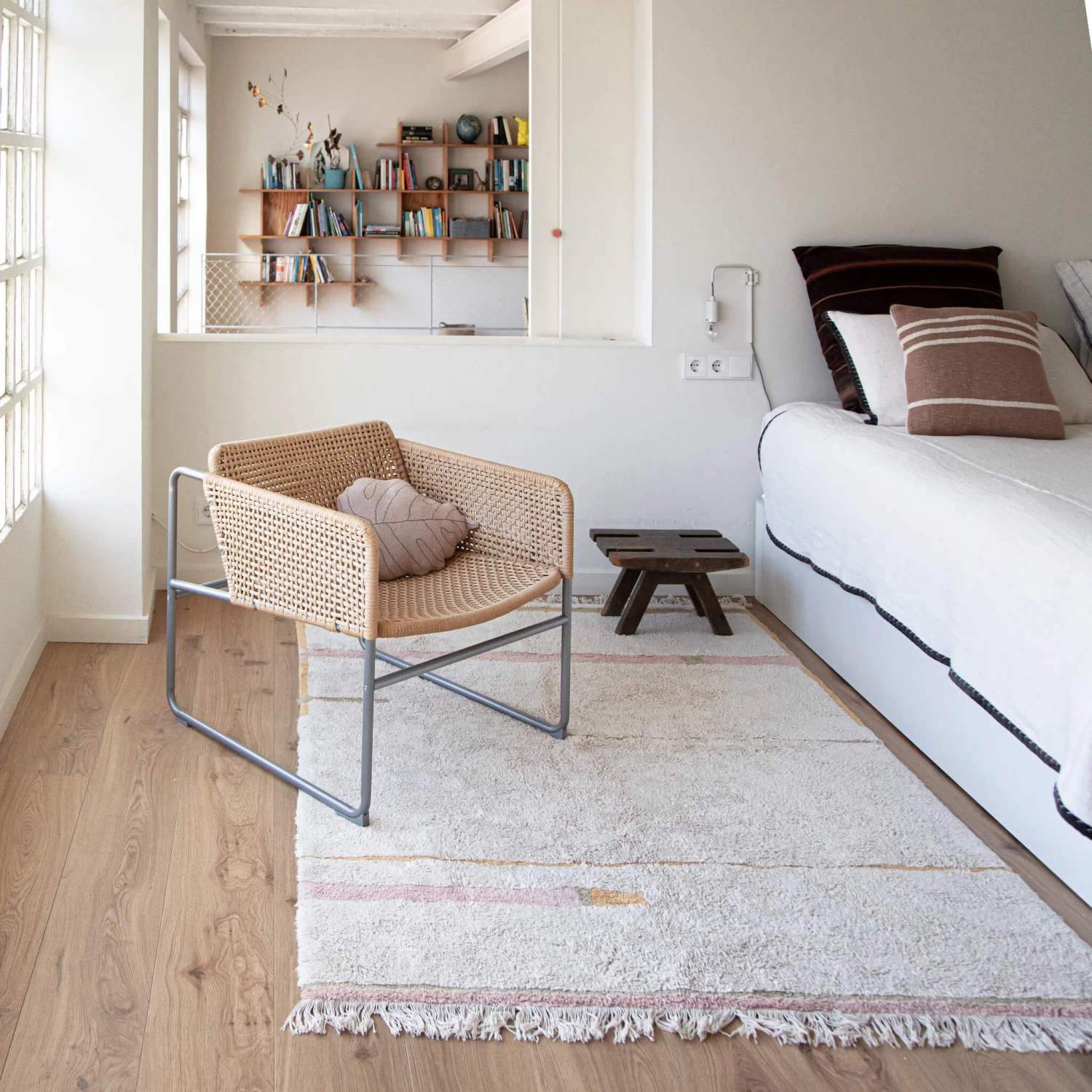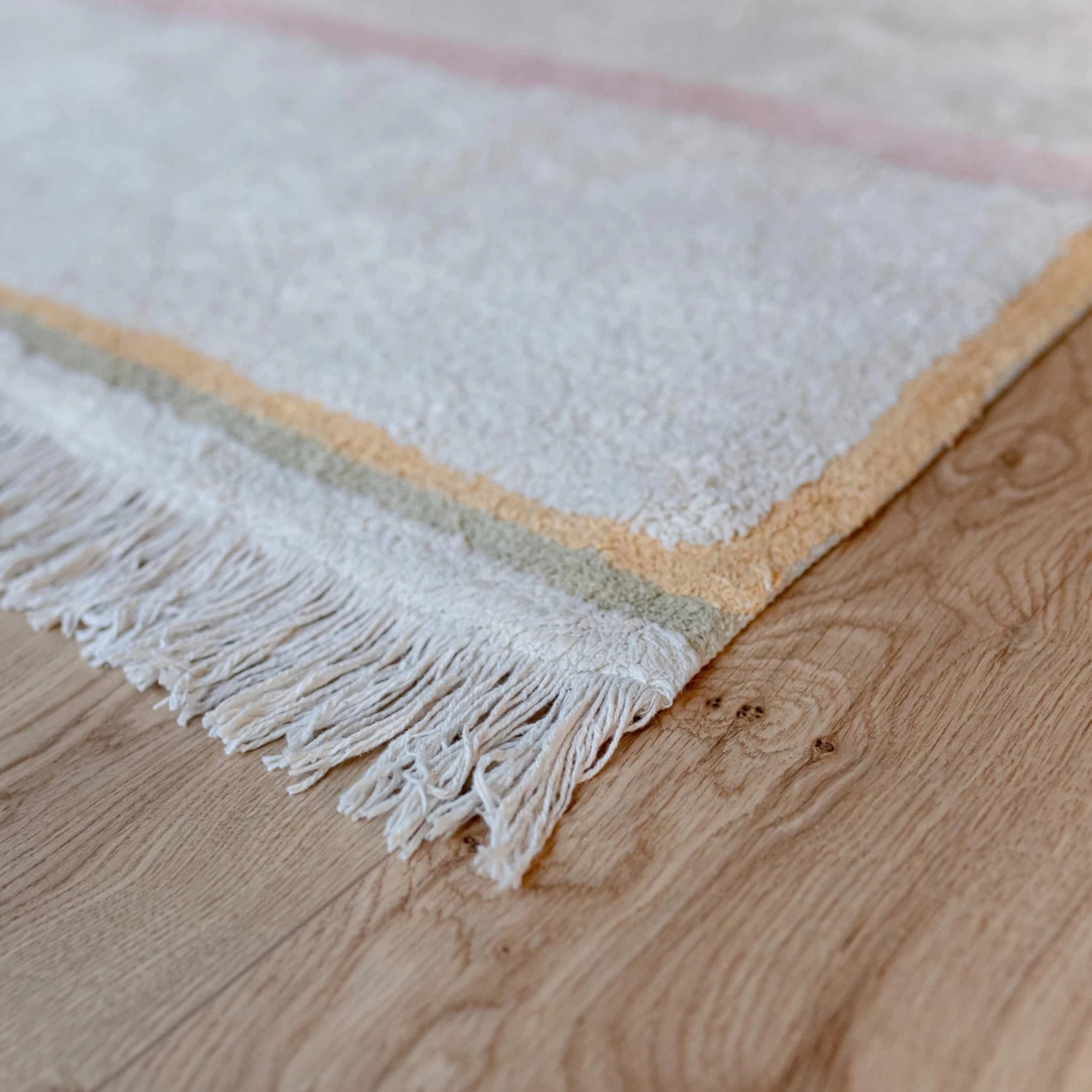 This Lanes rug suits any space with its muted colours – nude, honey and olive on a neutral background.