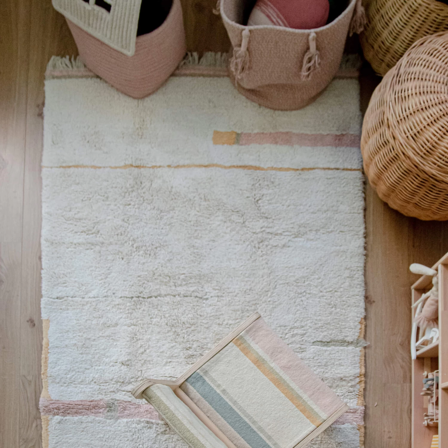 We love it when a product is as practical as it is beautiful. All of our rugs from Lorena Canals are totally washable at 30°C, so just a quick wash away from your little ones mess and dirt. Handmade from cotton and dyed with natural dyes they are soft and cosy.