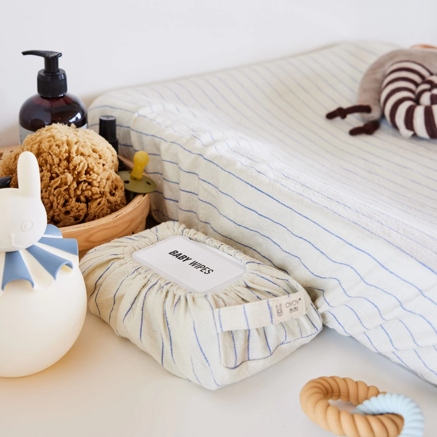 Liven up those essential wet wipes with this cotton wet wipe cover from OYOY in super fun optic blue stripes.