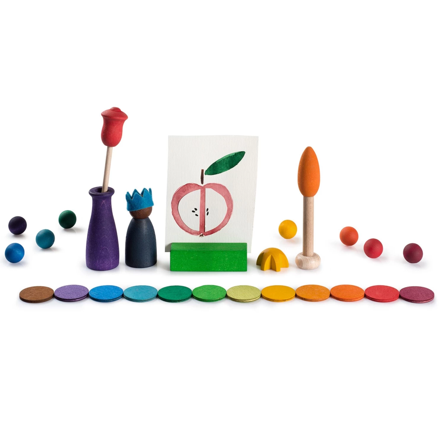Comprising of 31 pieces in an array of shapes, sizes, colours, and materials this set is a feast for the senses. A set which invites children to explore and celebrate every day, offering a tangible way to understand months, special dates, and the changing seasons.